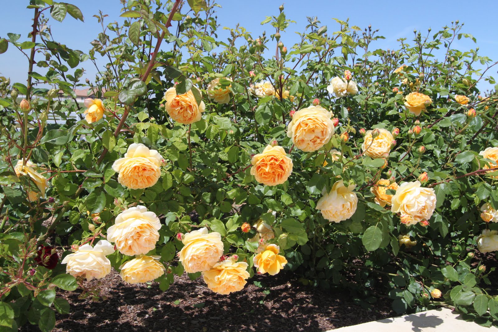 Сортът е млад, отгледан през 1983г.Благодарение на ароматните махрови цветя, растението е придобило голяма популярност сред производителите на цветя. Съцветията са големи, с диаметър 10-12 см. Венчелистчетата са с цвят на канарче с прасковен оттенък. Розовият храст цъфти от началото на лятото до първата слана. Съцветията се събират на гроздове от 3-5 бр.