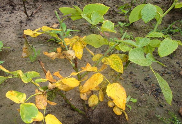 Често срещани причини, поради които розата неочаквано хвърля листата си, е нарушение на правилата за овлажняване на почвата. Липсата на влага в топлината провокира изсъхването на храстите, а излишъкът му причинява гниене на корените. Преовлажняването може да се определи чрез пожълтяване на листата и почерняване на леторастите.