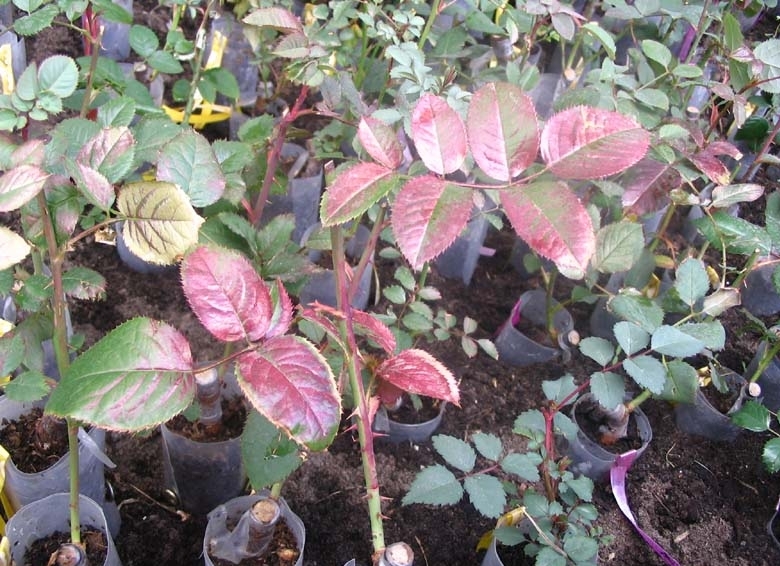- бледа, малка листа с червеникави петна и минимален брой пъпки показват азотен дефицит;