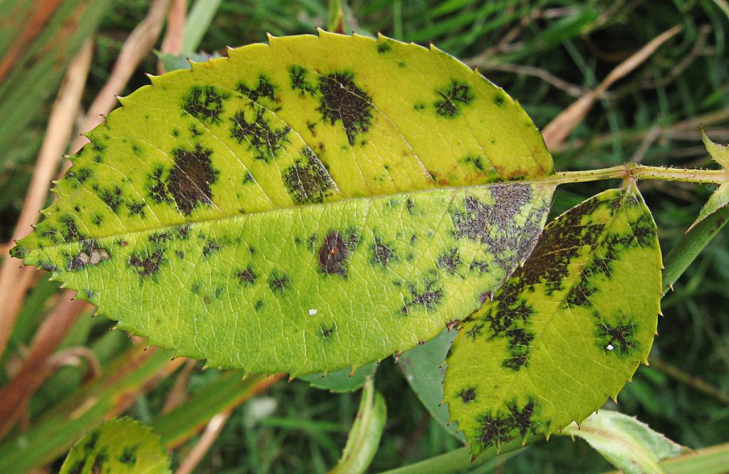 - Ръжда. Засяга всички части на розите; от горната страна на плочите се виждат петна с ръждив оттенък, от долната страна има малки червено-жълти подложки, в които при благоприятни условия узряват спори. Към средата на сезона по листата се появяват черни петна, пълни със зимни спори. Появата на патология се улеснява от студена пролет и липса на калий.