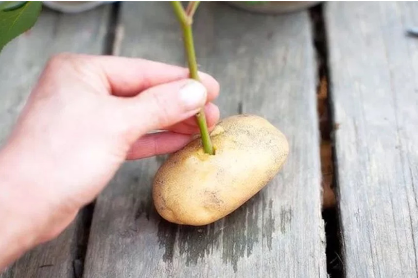 Вкореняването на рози с големи картофи е от полза, тъй като грудките са наситени с влага, минерали и нишесте, което гарантира висок процент на пълноценни разсад. Всички очи са изрязани в картофи. Това е необходимо, за да могат корените напълно да дадат всичките си хранителни вещества на цветята.