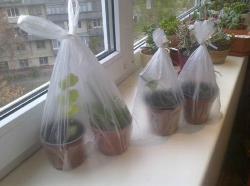 Саксиите се поставят в прозрачни найлонови торбички, които се завързват плътно, като първо се пълнят с издишан въздух.Торбите се поставят на добре осветено, топло, но не горещо място. Състоянието на основата се проверява периодично, ако е необходимо, се навлажнява.