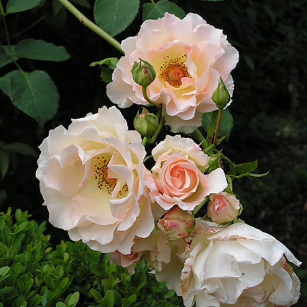 Издънките бързо растат, ставайки дебели и силни, когато узреят. Листата са тъмни, лъскави, приглушени в тон, следователно на техния фон акварелните цветя, наподобяващи древни сортове, изглеждат особено ярки и елегантни.