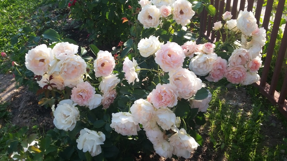 - Прекрасен Рококо. Представлява храст от около 1 м с двойно големи цветя и добър имунитет срещу брашнеста мана и черно петно. Цъфти отново и до измръзване.