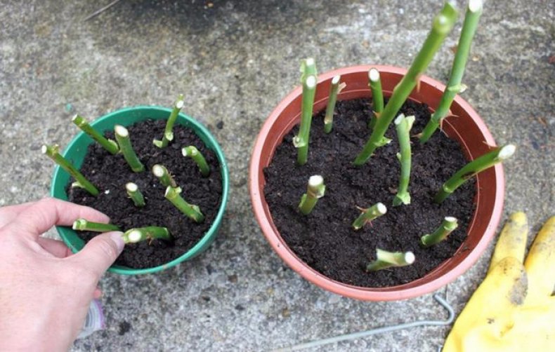 Най-добрият вариант за размножаване е резници. Първо трябва да проверите горните клони и да изберете най-трайните. След това си струва да отрежете самото рязане. Горният разрез трябва да се прави направо от бъбрека, а долният под ъгъл близо до бъбрека. Приготвената резница трябва да бъде засадена в пясъка и покрита с буркан. Почвата трябва да се навлажни.