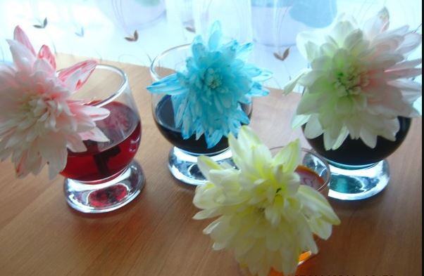 - Живопис. Цветето трябва да се постави в контейнер с багрило и да се остави в него за 25-30 часа. С течение на времето венчелистчетата постепенно ще започнат да се оцветяват отново. Отначало върху тях ще се появят малки петна, които постепенно ще започнат да се увеличават.