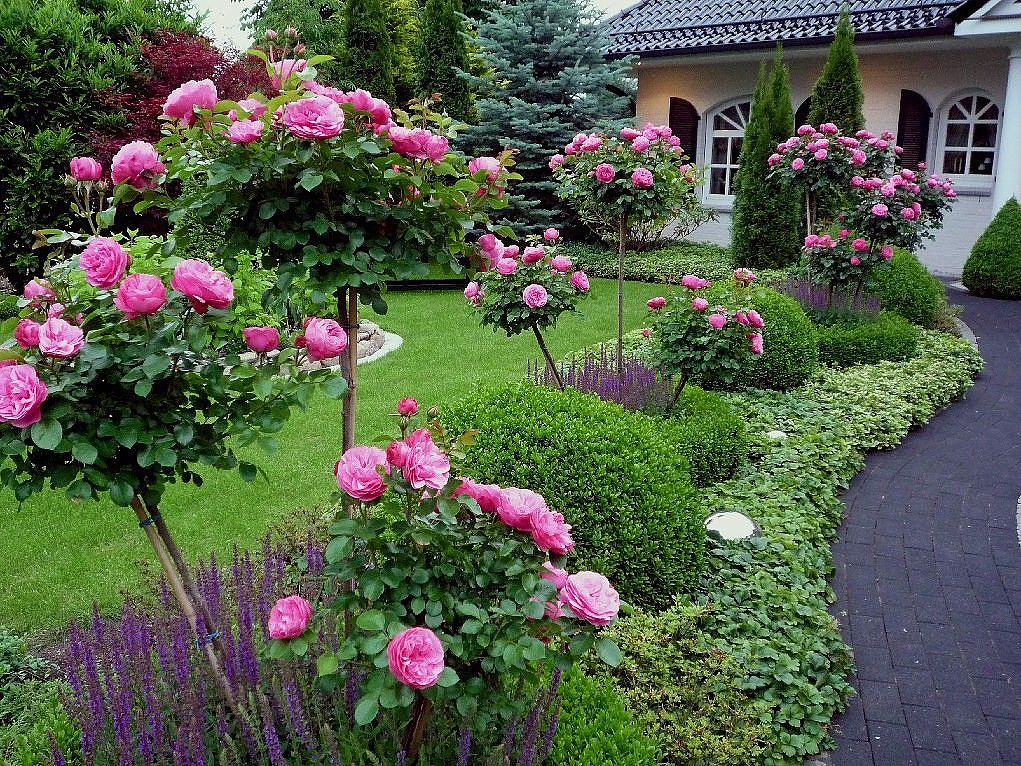 Когато създавате дизайн, се препоръчва да се придържате към няколко правила за това как красиво да засадите рози в предната градина: