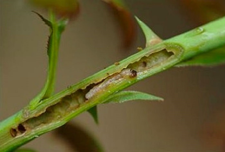 Женската, снасяща яйца по върховете на младите стъбла, осигурява на ларвите най-добрата храна. Те гризат издънки. Те се въвеждат в стъблото. Потъмнява и изсъхва.