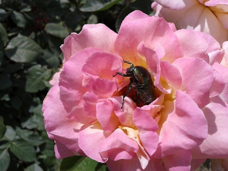 И двата бръмбара активно ядат розови листенца.Цветята в светли цветове страдат най-много от вредители.