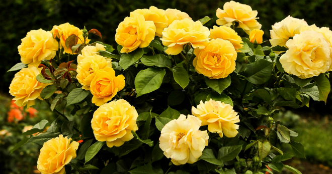 - Храсти с жълти пъпки се срещат в такива сортове рози като флорибунда, полиантус, катерене, миниатюра.