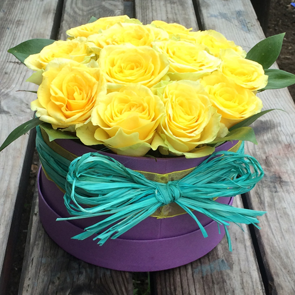 Слънчевите рози могат да се комбинират не само с червени нюанси. Жълто-белите рози, които въплъщават самата нежност и безтегловност, изглеждат привлекателни и необичайни.