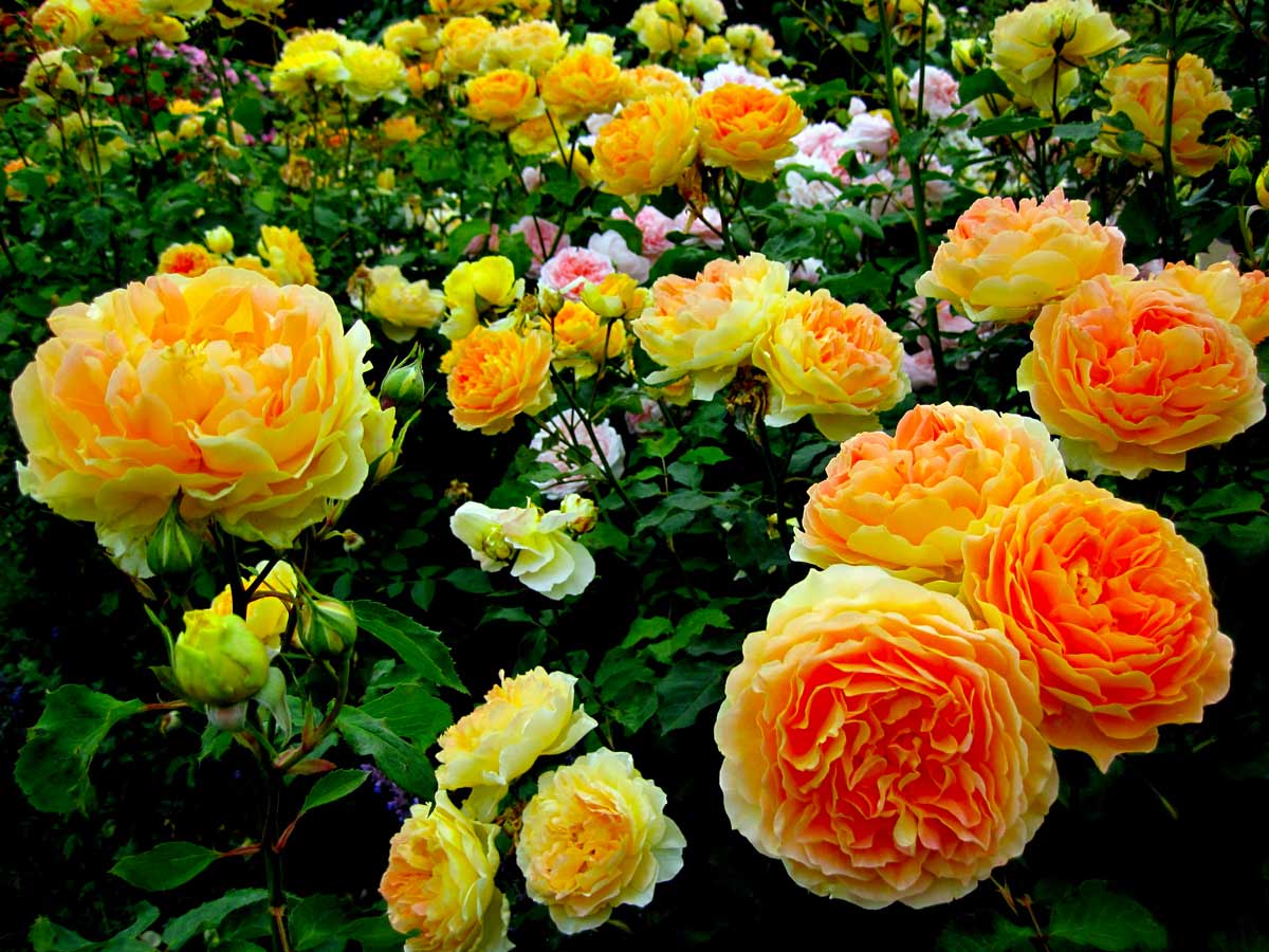 - Кронпринцеса Маргарет - височина 1,8 м, двойни венчелистчета са оцветени в оранжево-жълто, големи, с диаметър около 12 см.