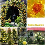 Градинарите използват храсти със златни венчелистчета за различни дизайни на арки, цветни лехи, розови градини.