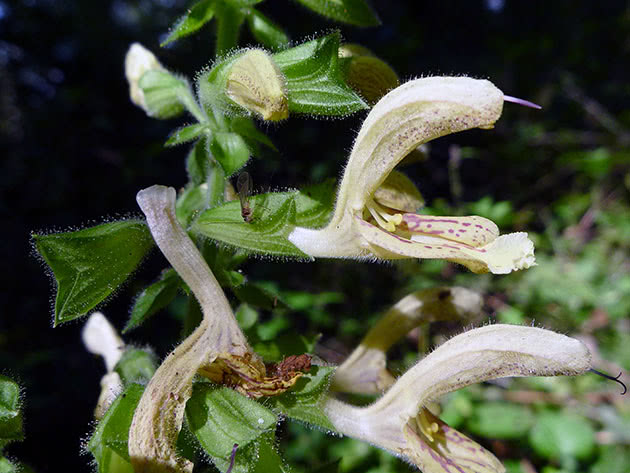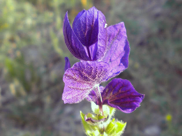 Второто име на това цвете е шарена салвия. Прицветниците са ярки, покрити с пух. Най-често те са оцветени в лилаво, понякога в розово.