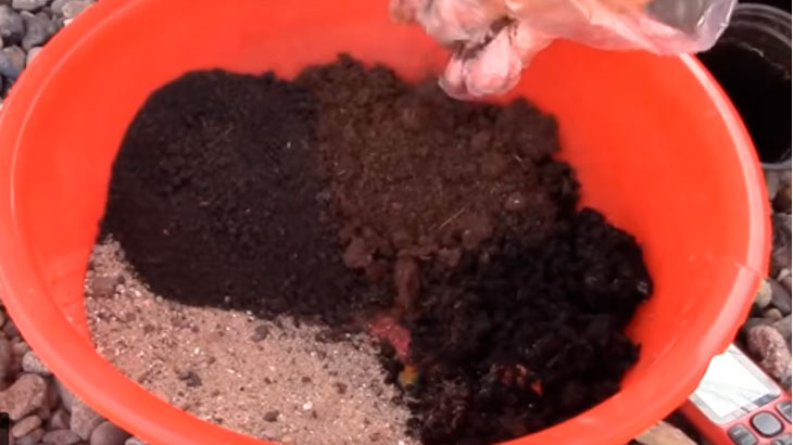 - пясък, хумус, торф - по 1 част.
