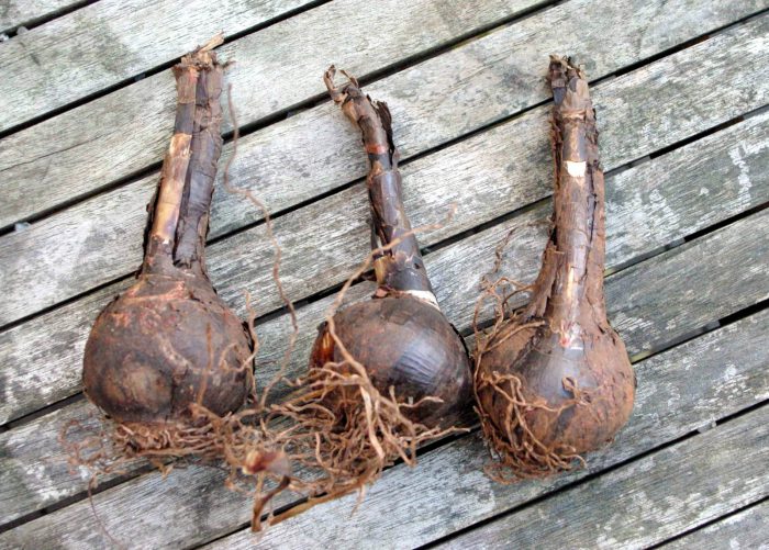 Окончателното отмиране на листата сигнализира за изкопаването и почистването на почвата и изсъхналите върхове. Забранено е изрязването на корените на луковиците.