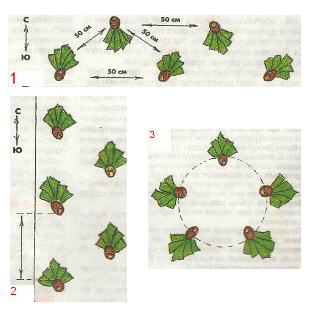 - „В кръг“. Растенията се засаждат в кръг. В този случай необходимото разстояние е само 30 см (в диаметър).
