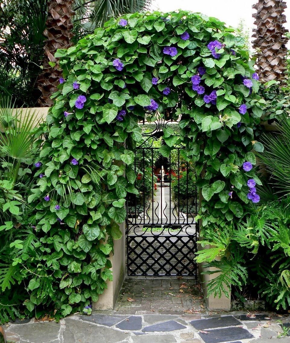 Бързо растящите бухалки цветя са добри в дизайна на временни екрани, беседки. Трябва само да приложите въображение, да изберете правилната цветова схема и ще получите прекрасен сенчест ъгъл за релакс. Красива богата каскада от зеленина се разрежда с красиви цветя от бели, бледо розови, синкави или люлякови нюанси, които се разгръщат сутрин. Декоративните видове хищници, със сочни ярки цветове на венчелистчета и крайници, са много популярни.