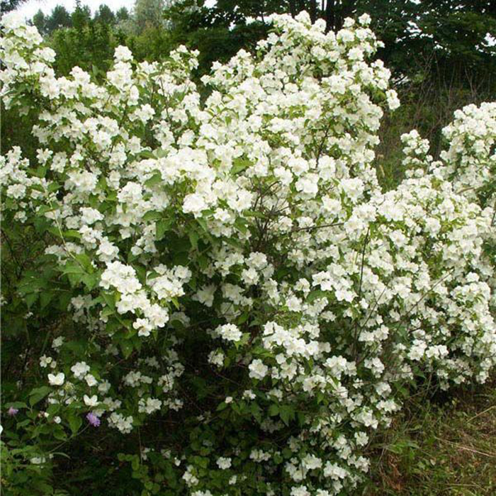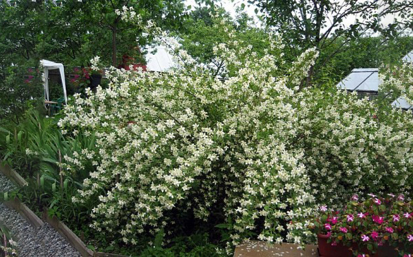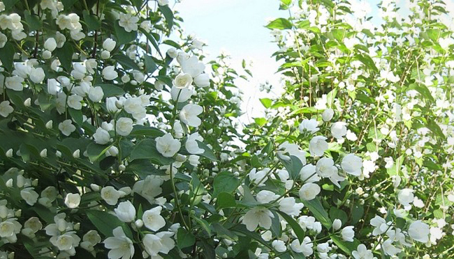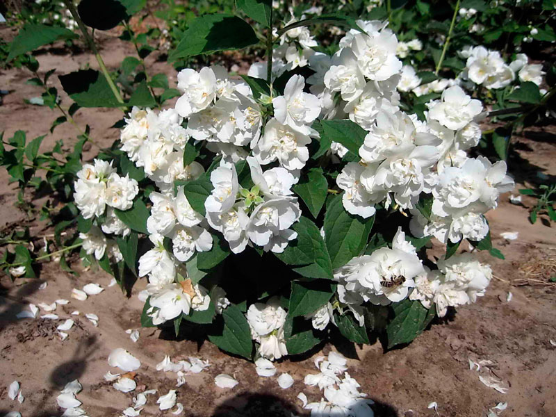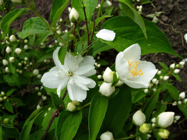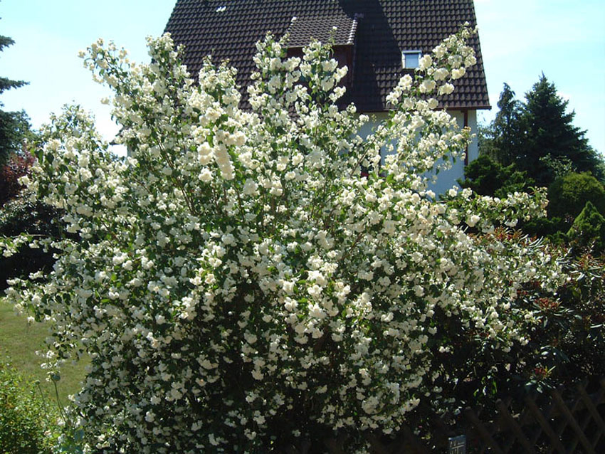Един от сортовете чубушник е махровият жасмин, популярен декоративен храст от умерената ивица.