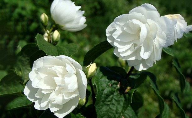 Видовете махрови жасмин са много популярни сред градинарите поради техните декоративни свойства. Сред 60-те сортове за разплод най-често срещаните са: